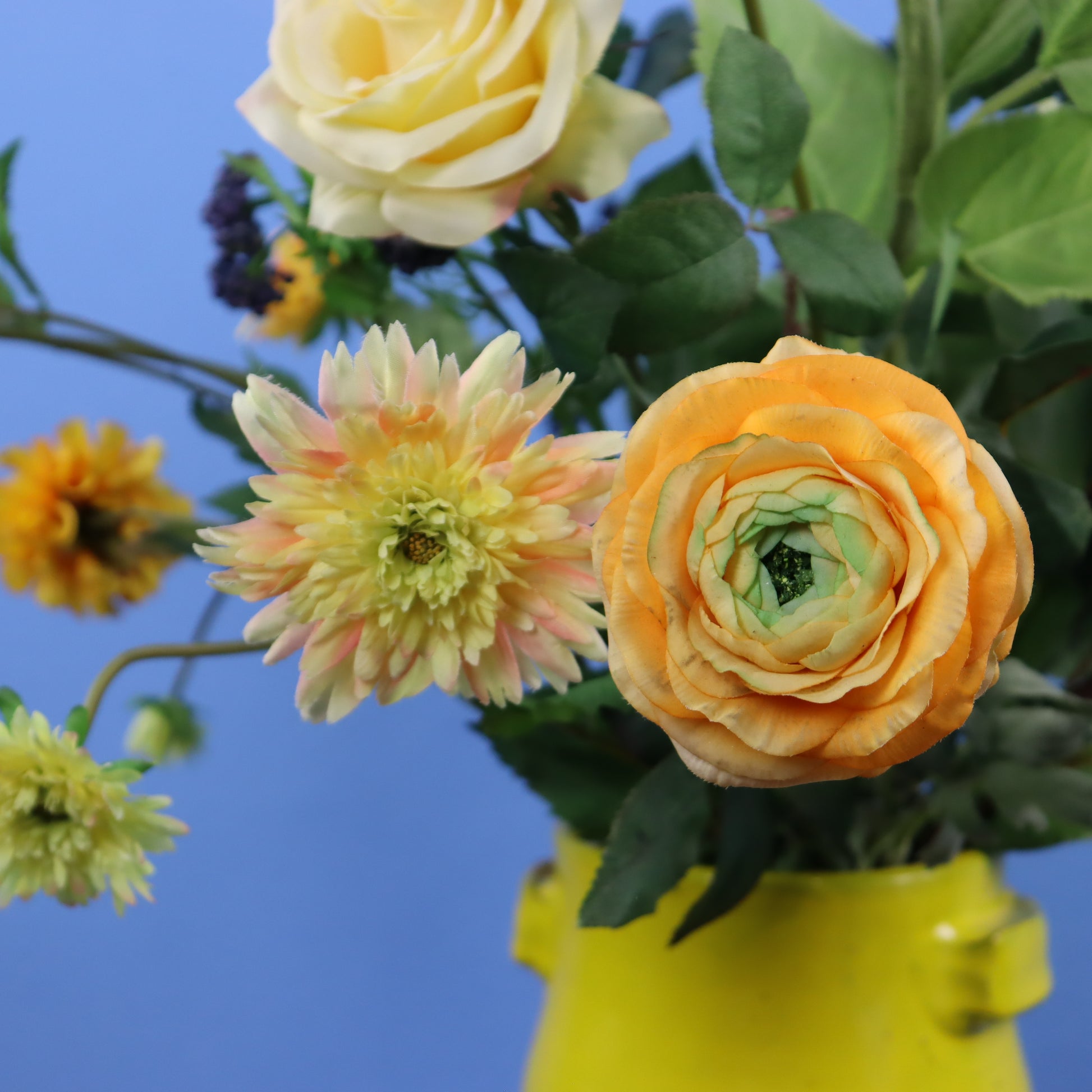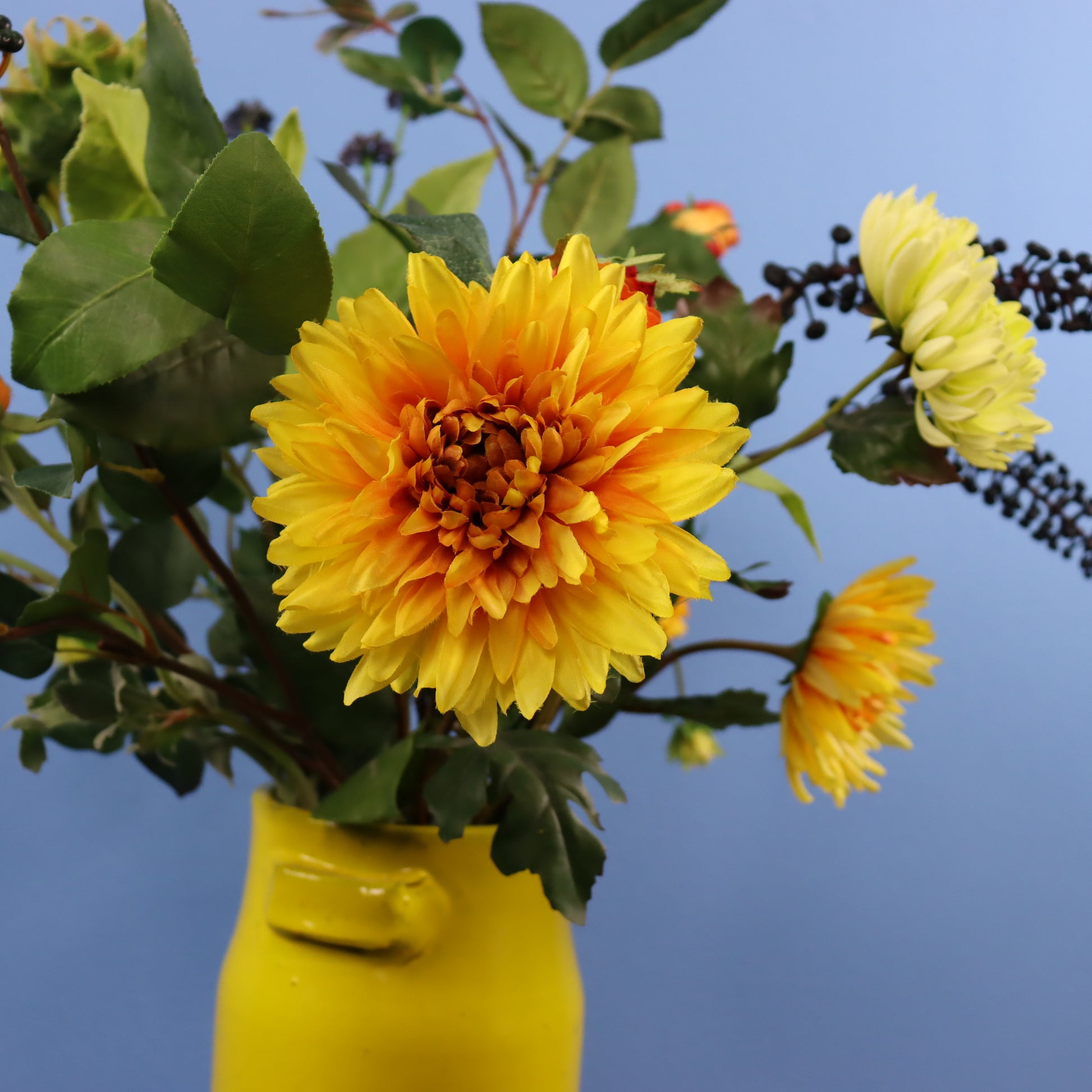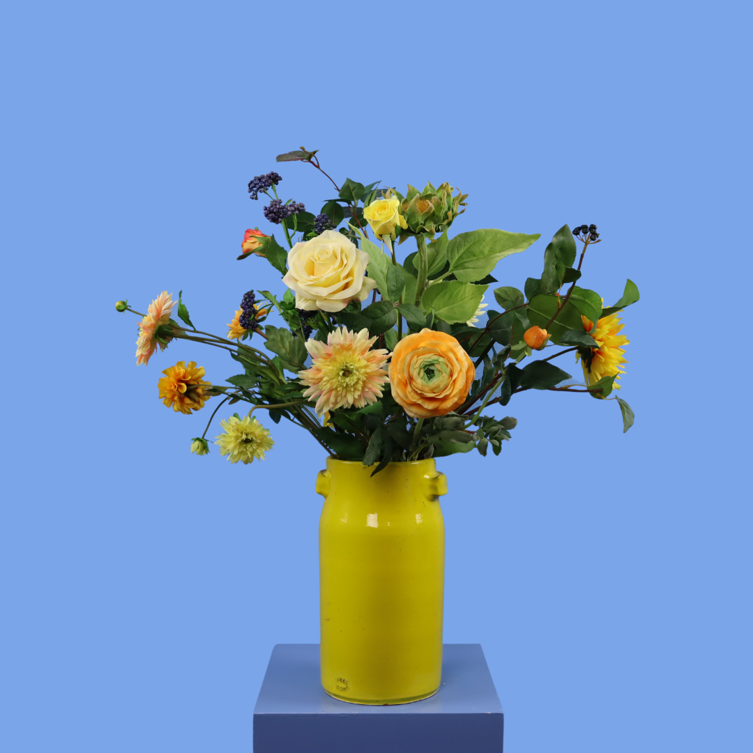 Gave gele Serax vaas met een bosje najaar.