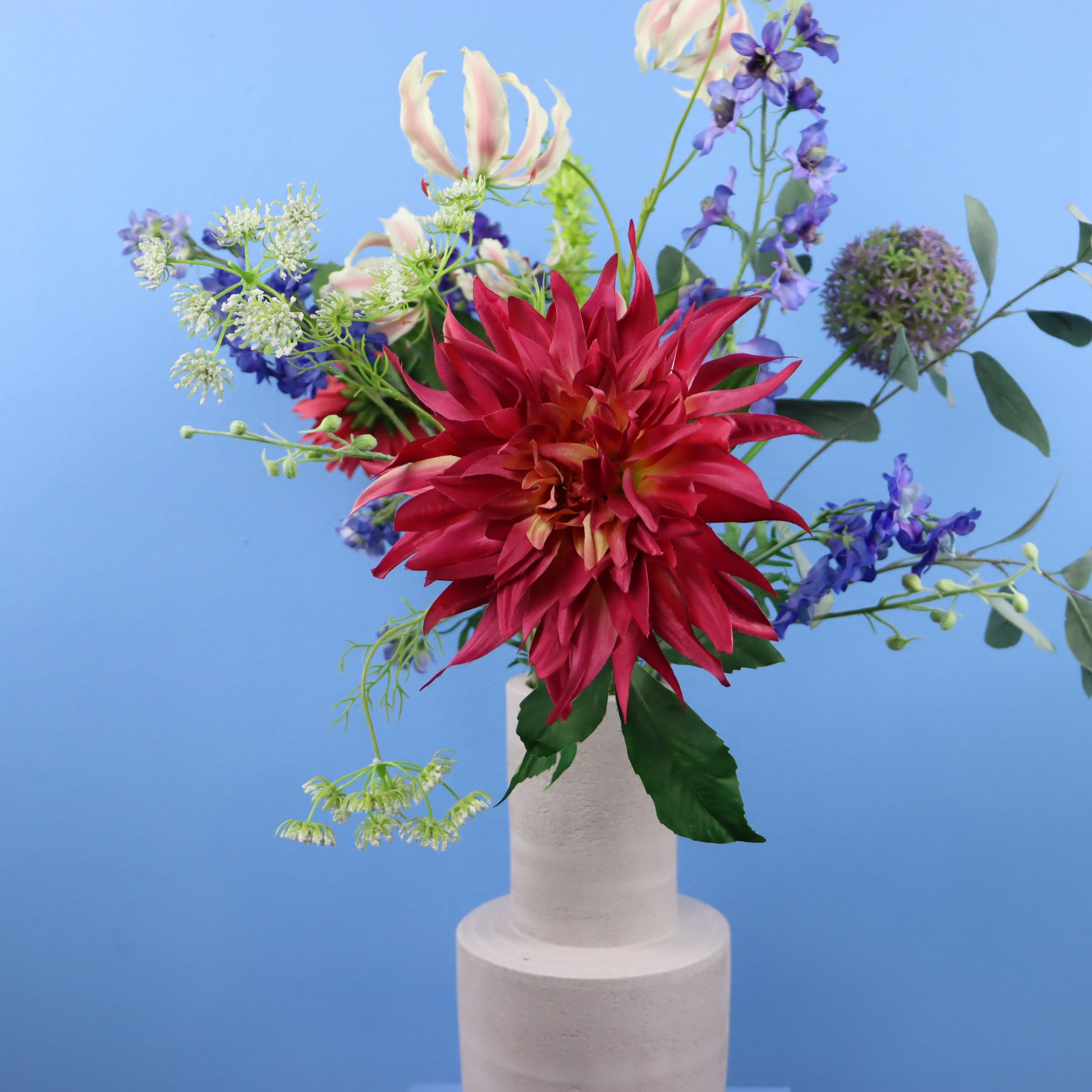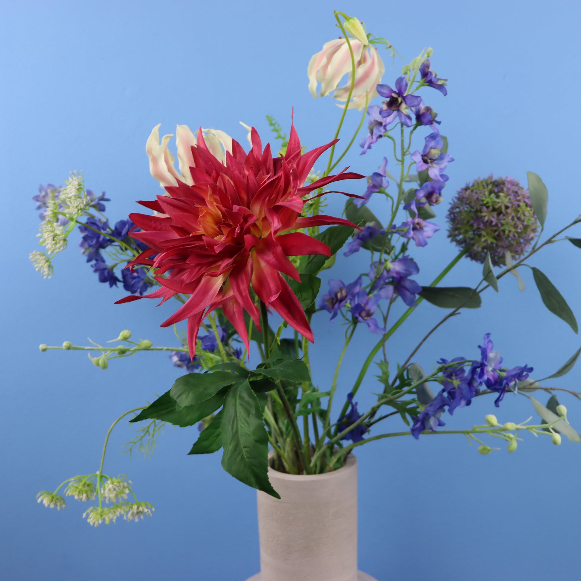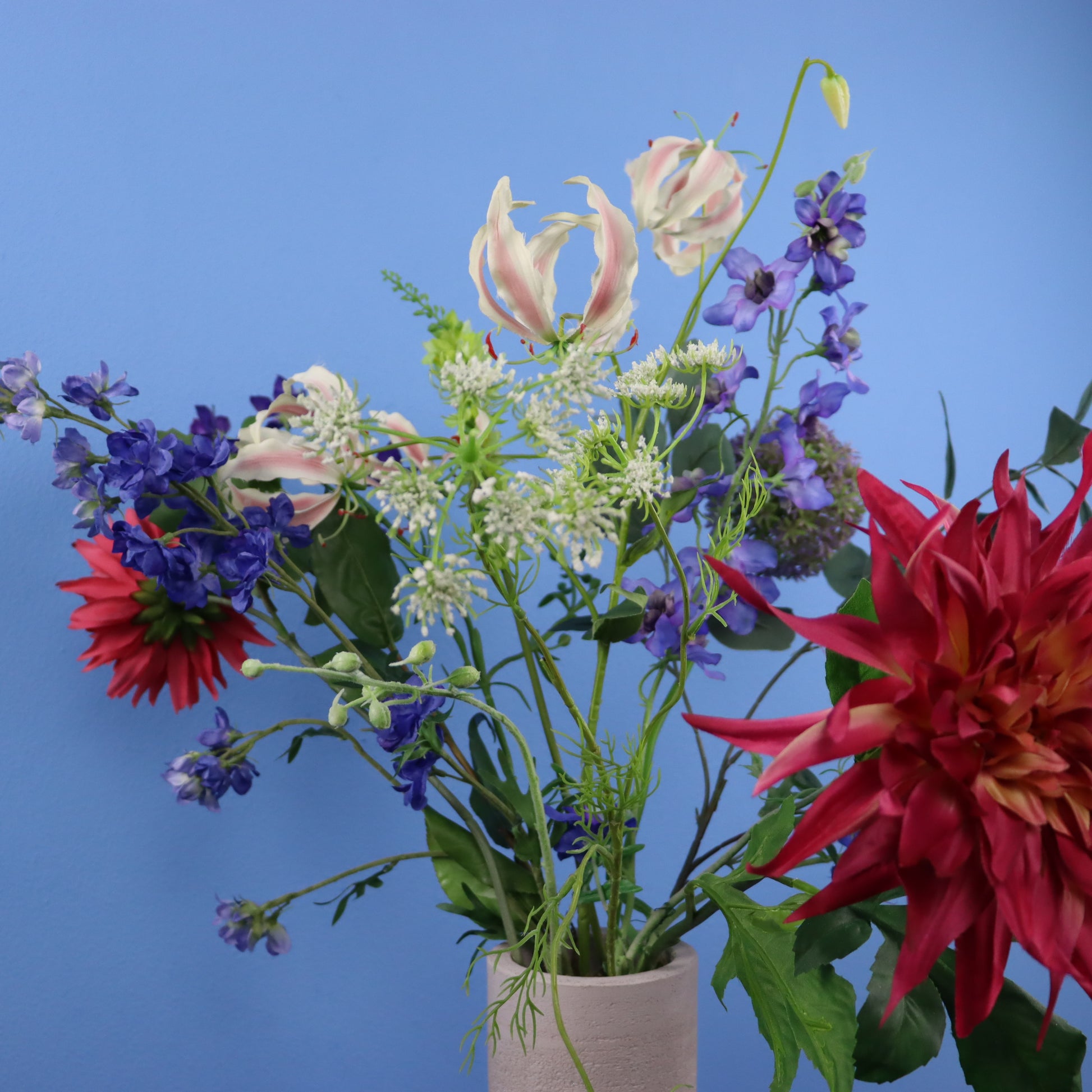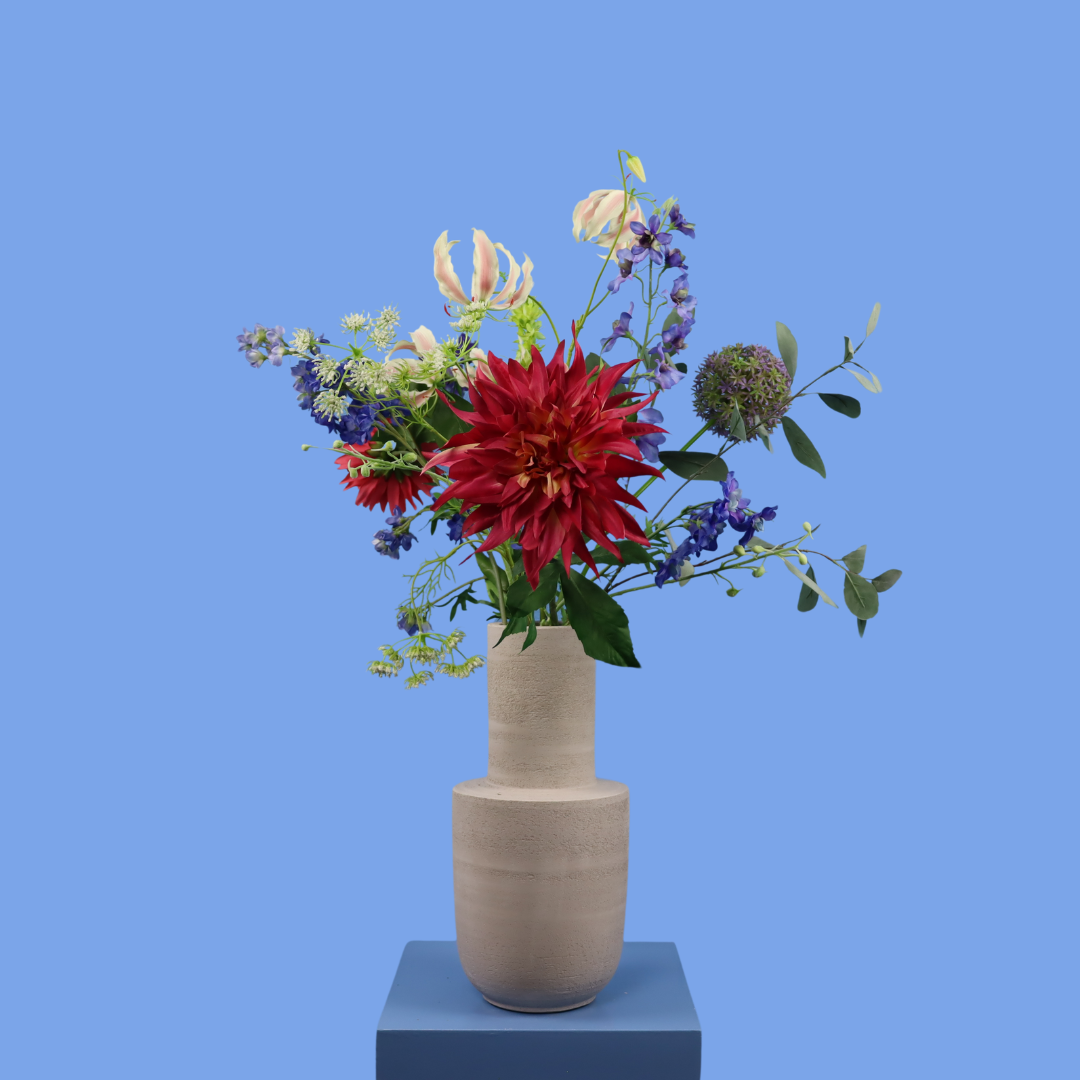 Prachtige betonnen Piet Boon vaas met een vrolijk zomers boeket.