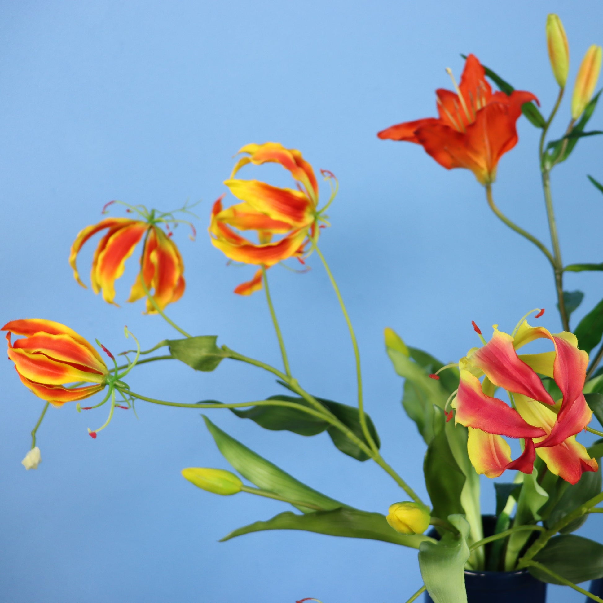 Prachtige blauwe Return to Sender vaas met een najaarsboeket.