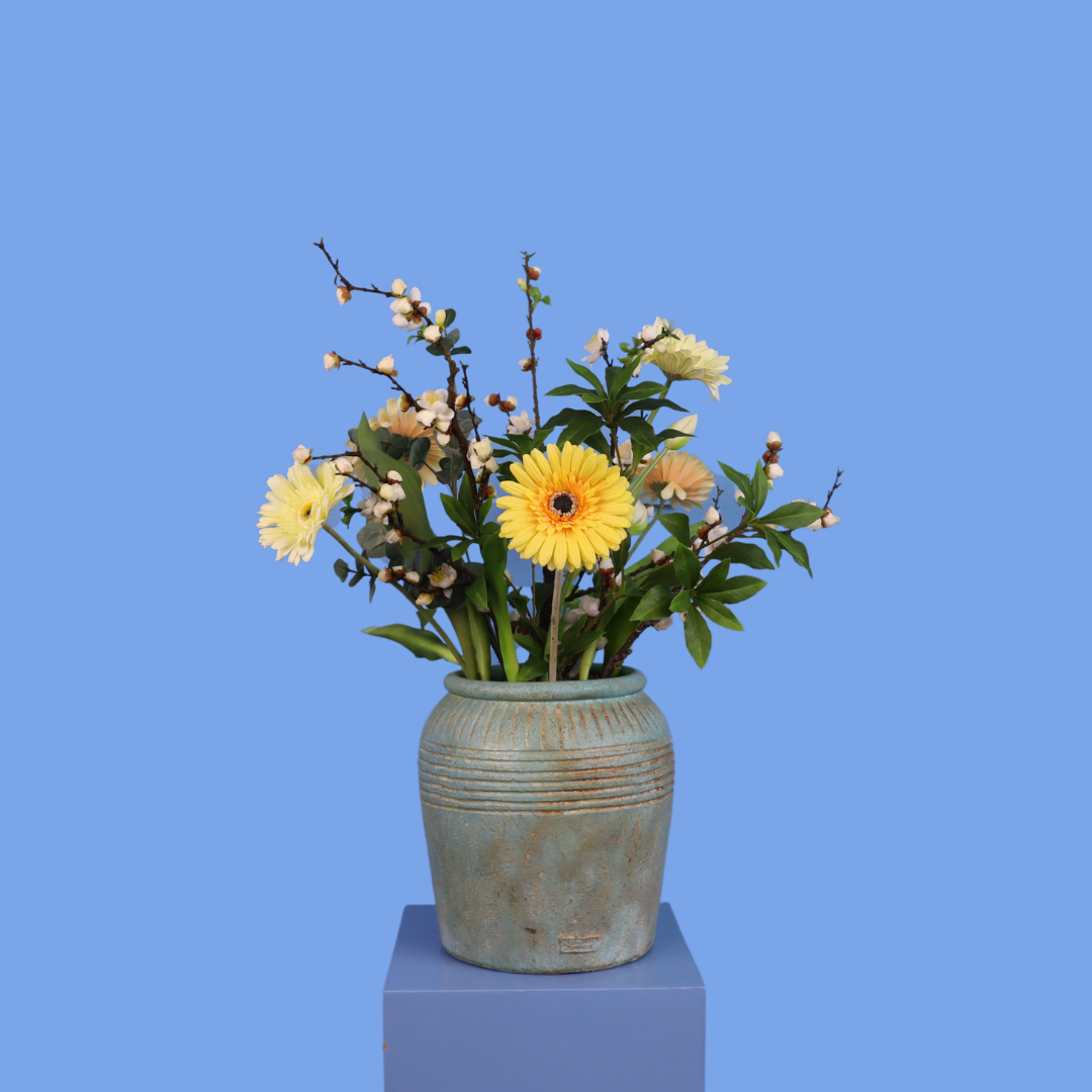 Reliving vaas van Tica in het groen gevuld met een voorjaarsboeket.