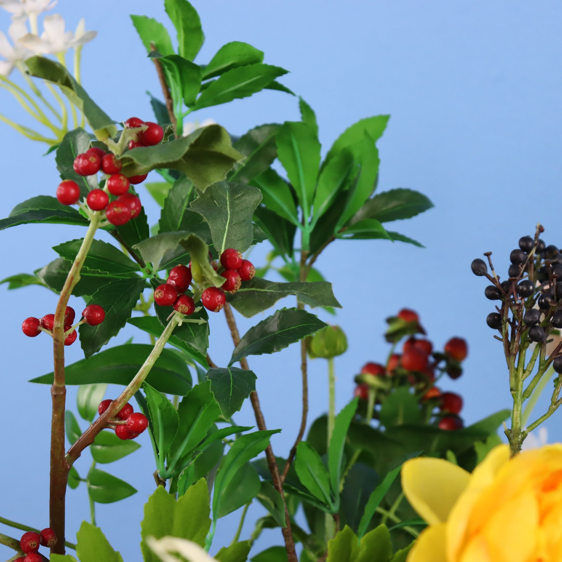 Deze prachtige gele Serax vaas is gevuld met een gevarieerde mix van blijvende bloemen.
