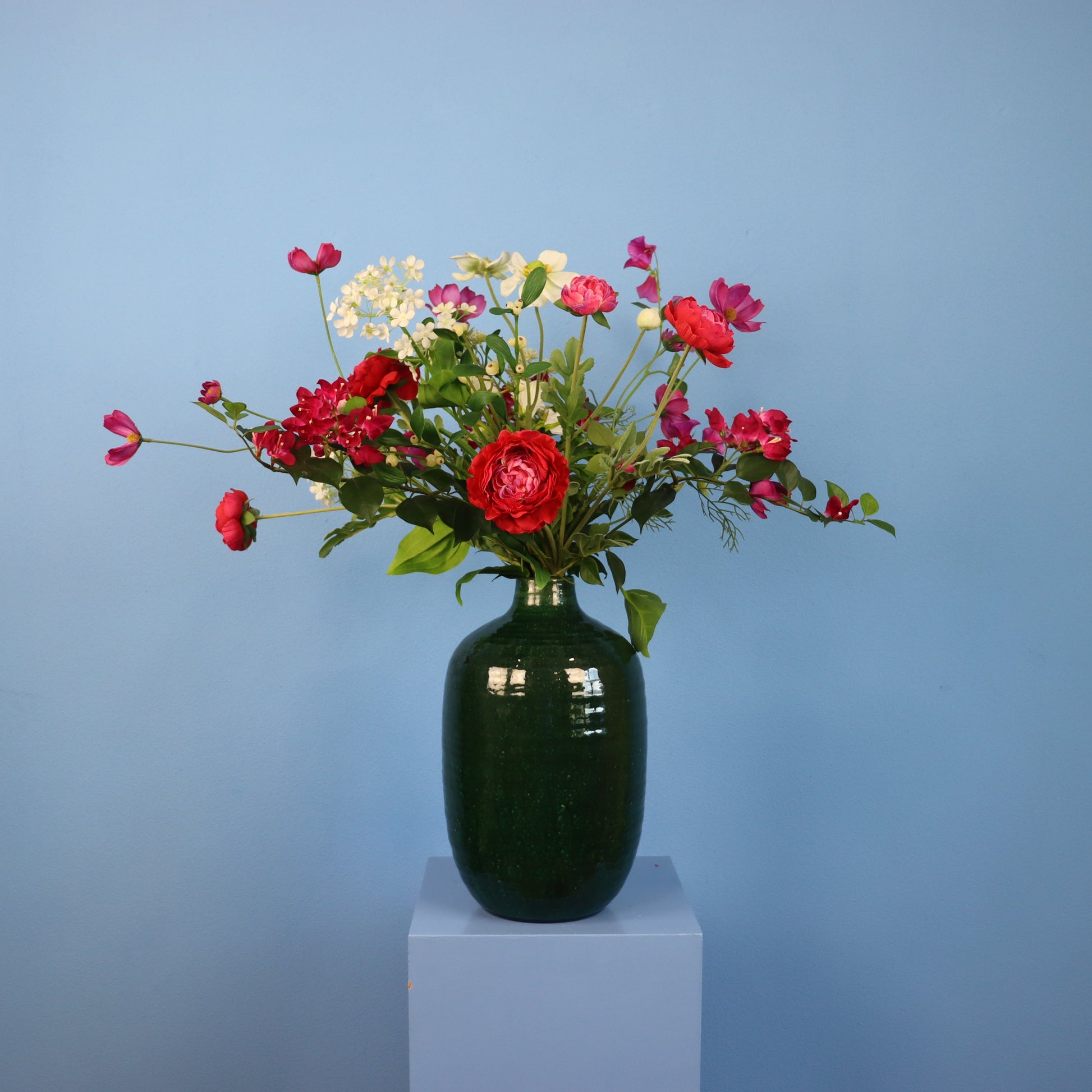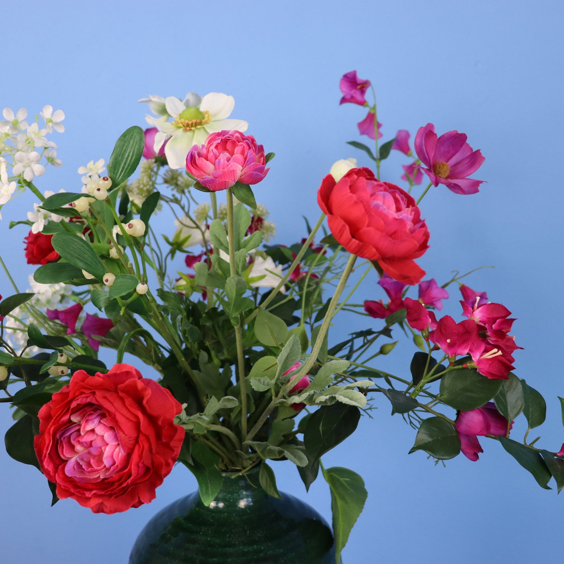 Groene Serax vaas met een prachtige blijvende bloemen mix.