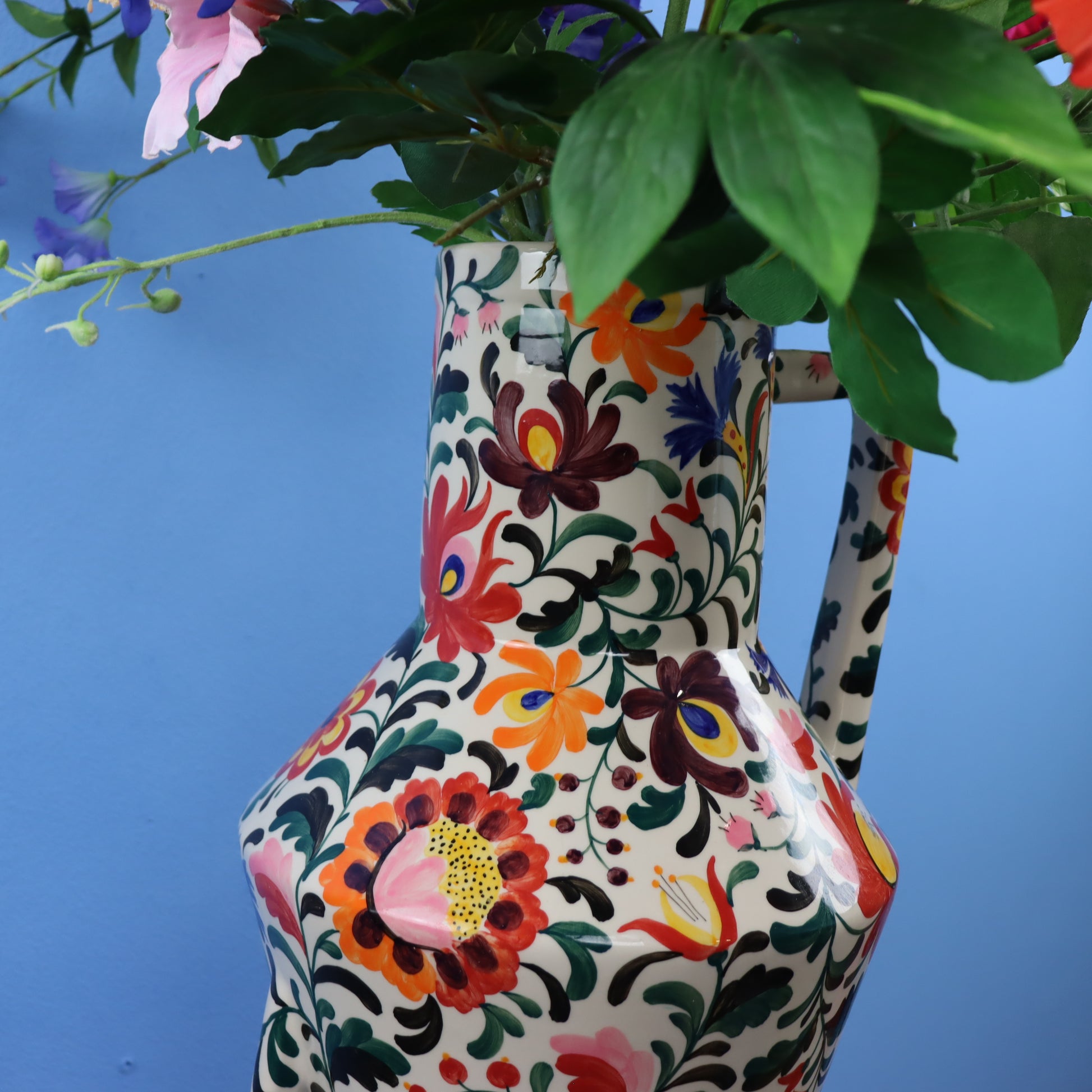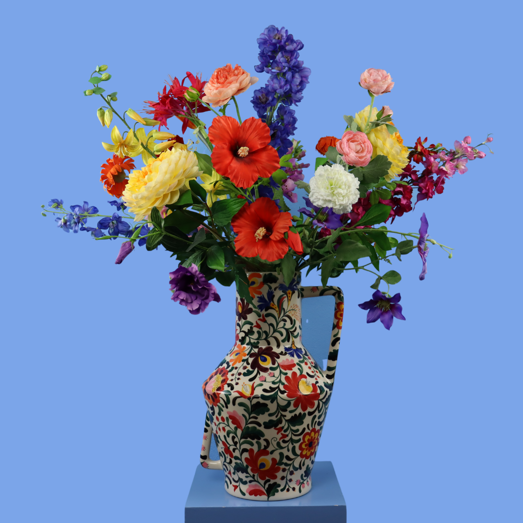 Deze prachtige handbeschilderde Return to Sender vaas gevuld met prachtige bloemen.