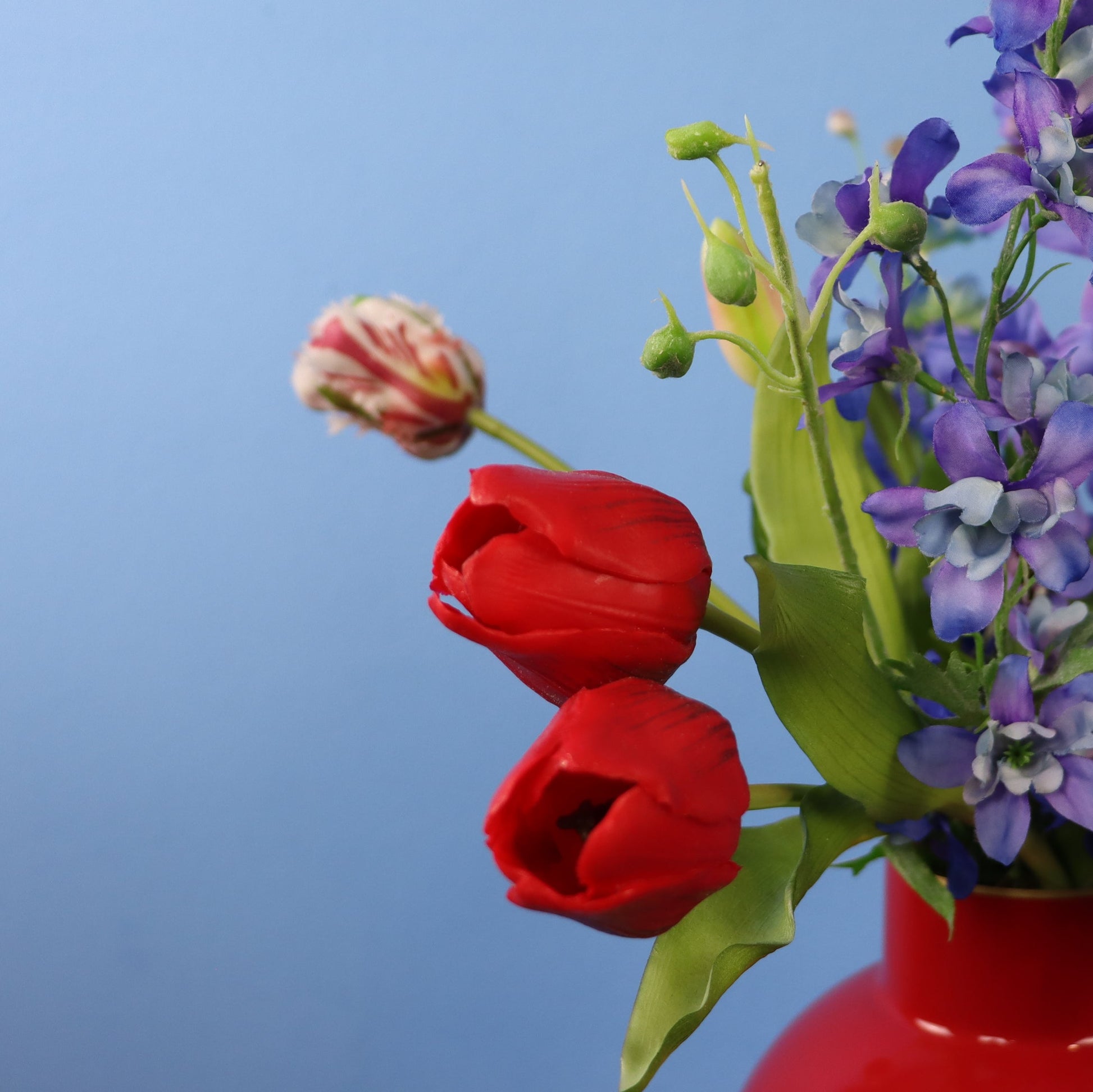 Blijvend boeket in een rode vaas van Pip Studio.