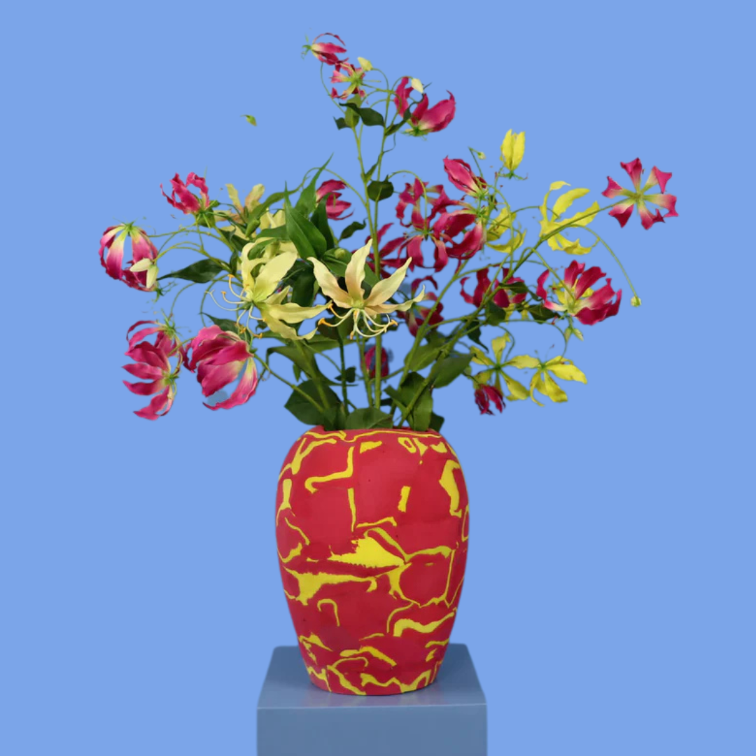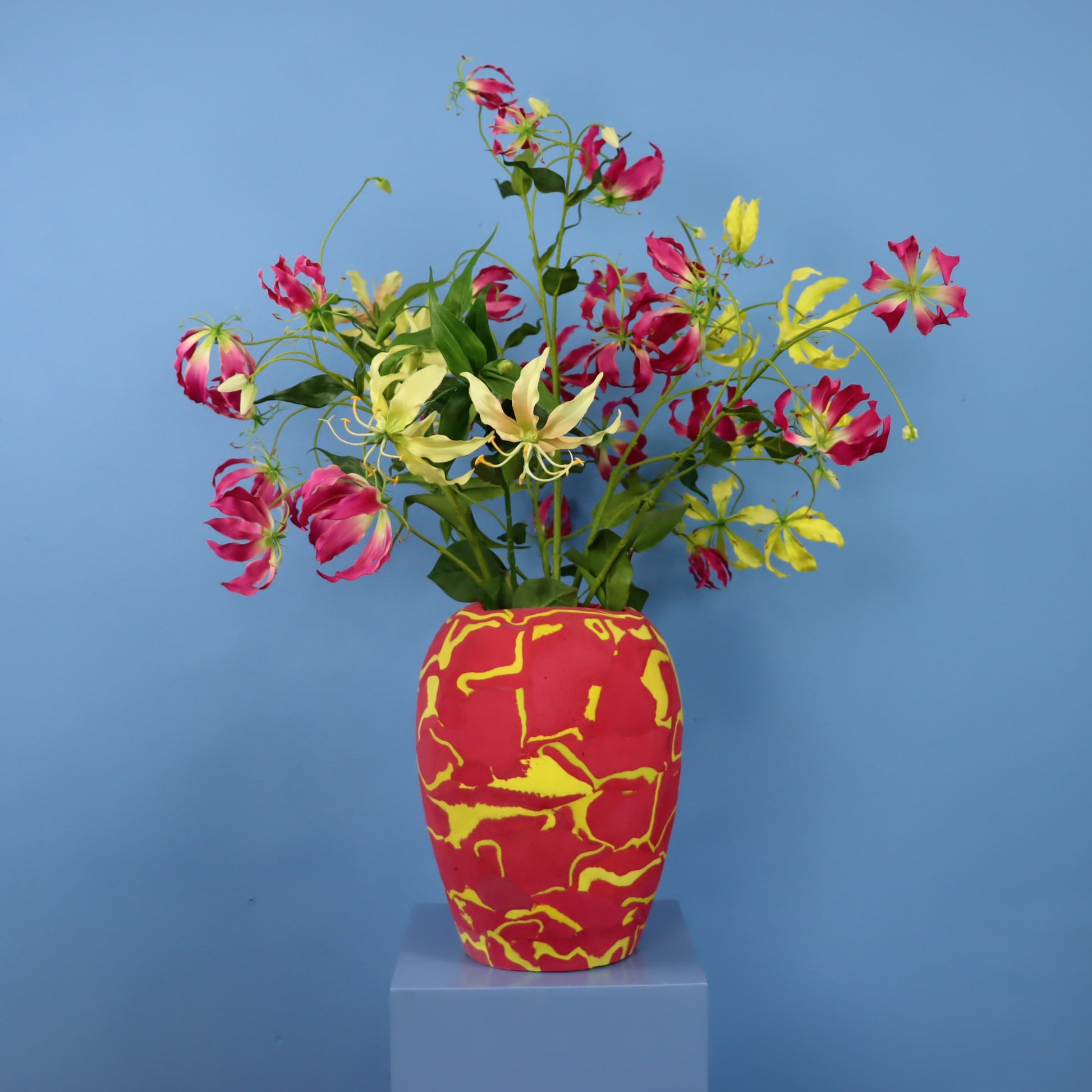 Dit is een Nic&Mic x Ocean Sole vaas. Van gevonden slippers op het strand in Kenia, worden deze vazen gemaakt. Echt de art of upcycling. Deze speciale vaas komt met een bos blijvende gloriosa's wat zorgt voor een kleurrijke en tropische uitstraling in elke ruimte.