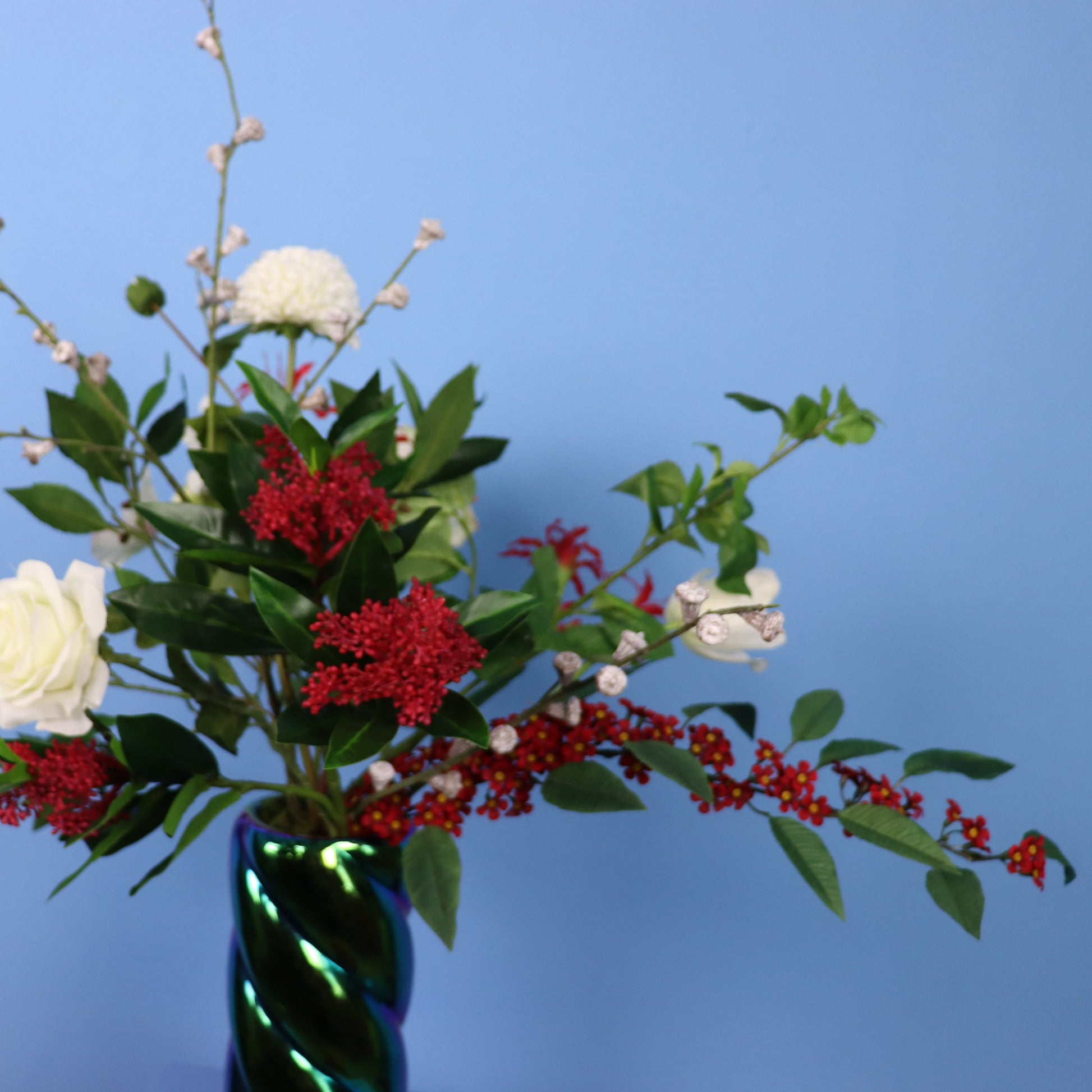 In deze beeldige gekleurde Oily vaas de geseleteerde bloemen door POM Amsterdam.