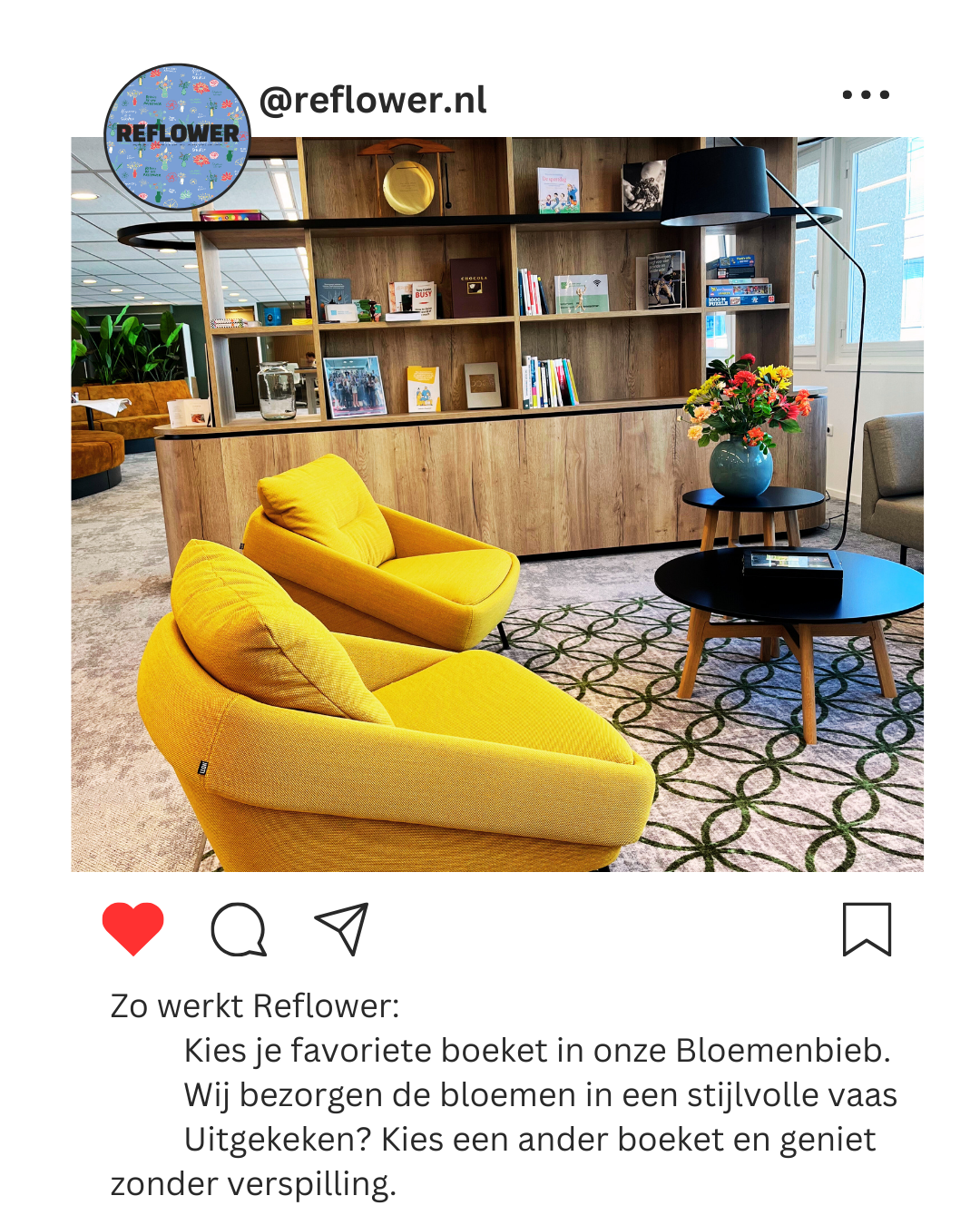 Een Reflower abonnement is geschikt voor thuis of op kantoor, maar ook in de horeca, winkel of wachtkamer.