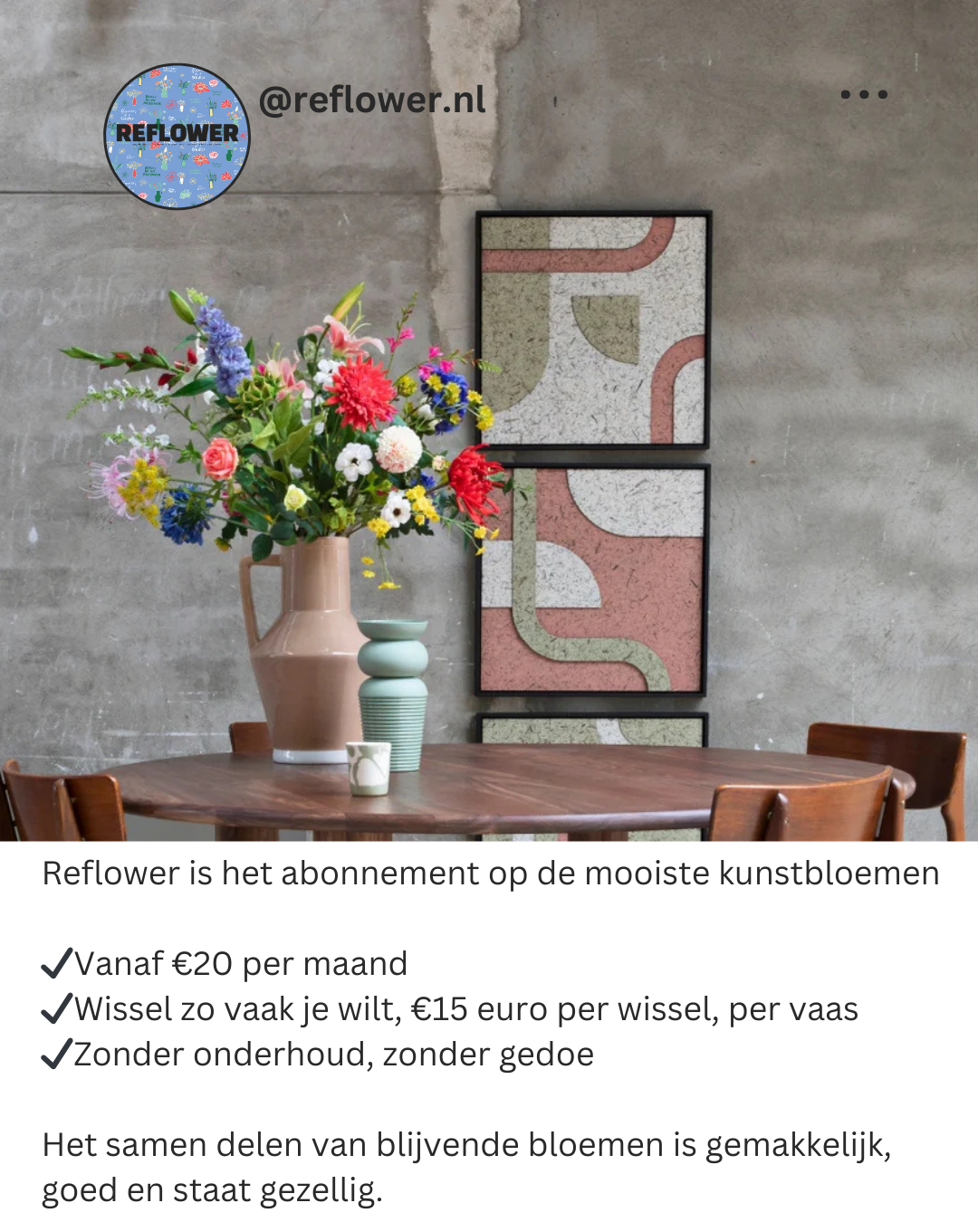 Reflower is het abonnement op kunstbloemen, maar wij noemen het liever blijvende bloemen.
