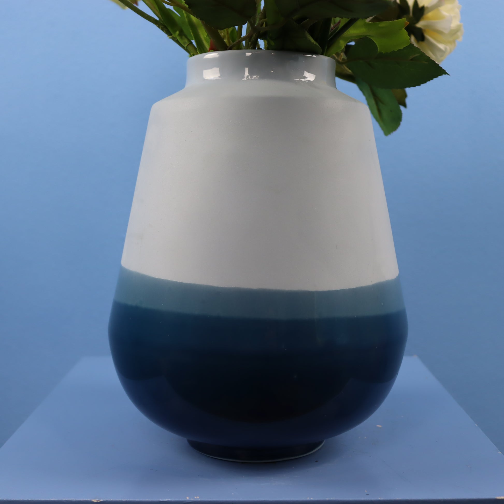 Vaas van Harm en Elke in het wit en verschillende tinten blauw.