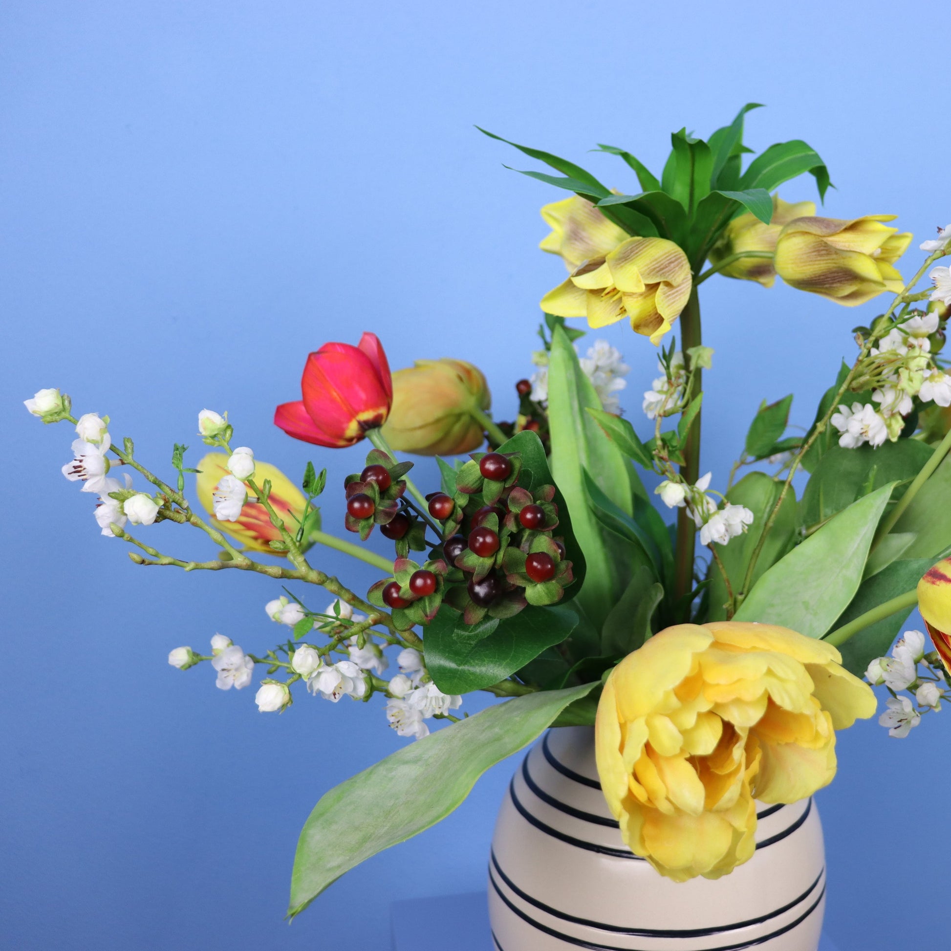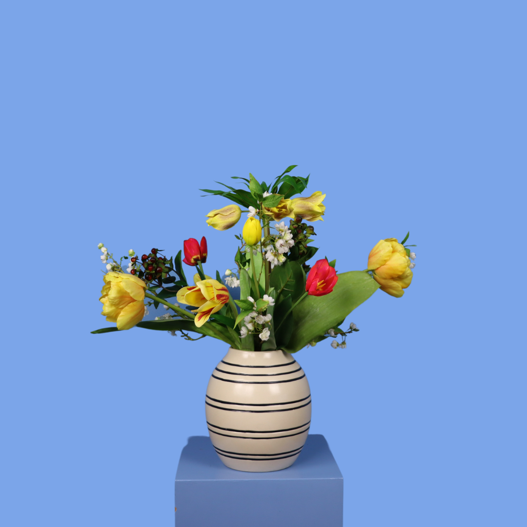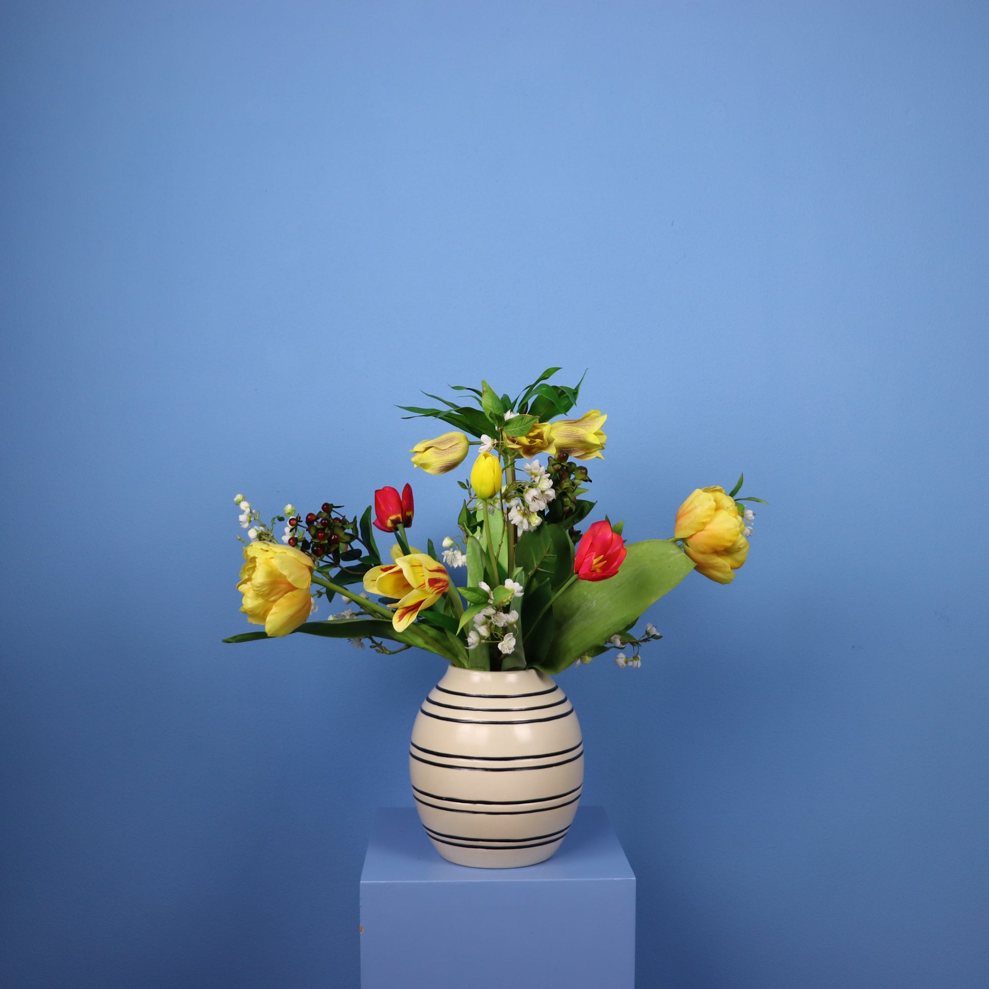 Deze gestreepte vaas van H&M komt met een gezellig boeket.