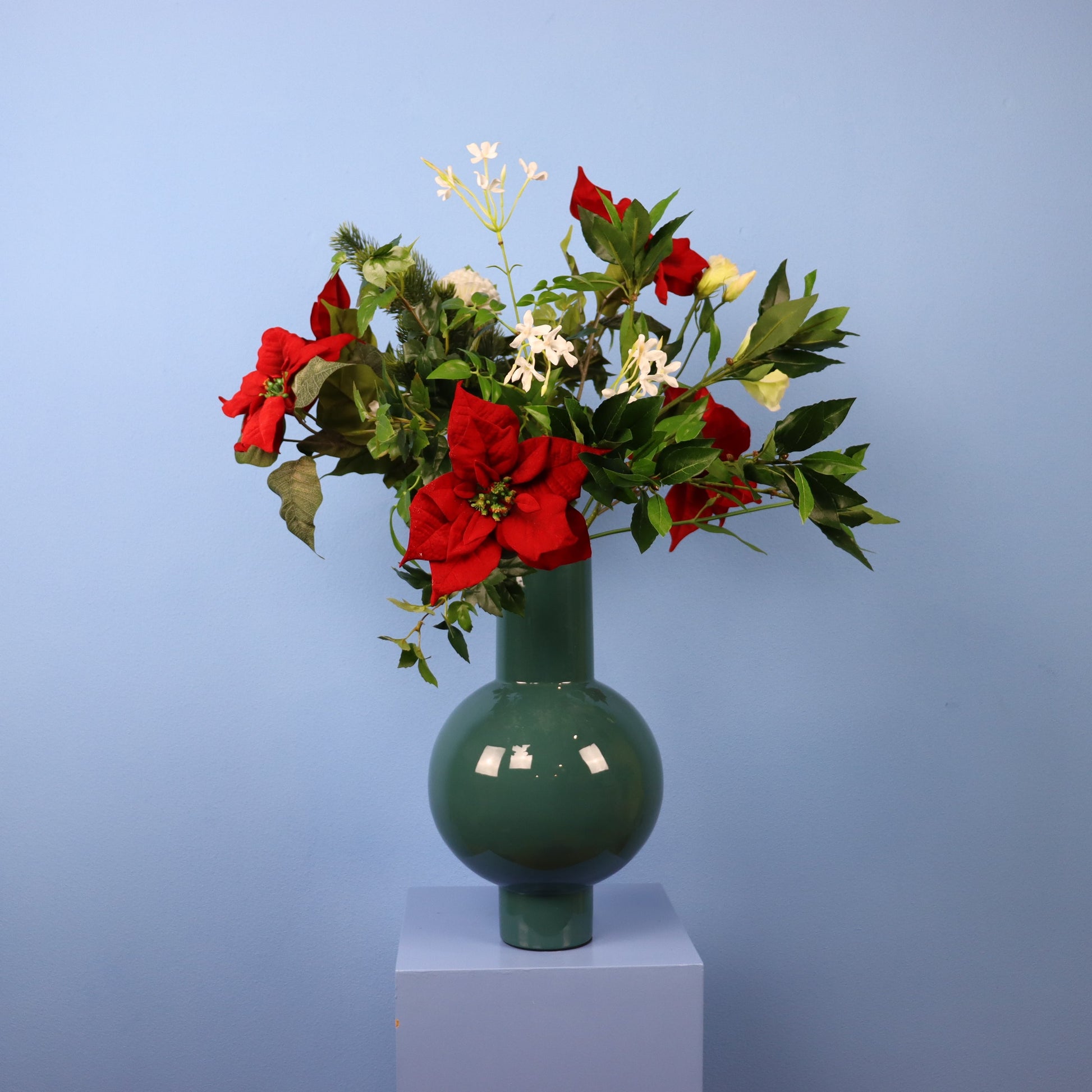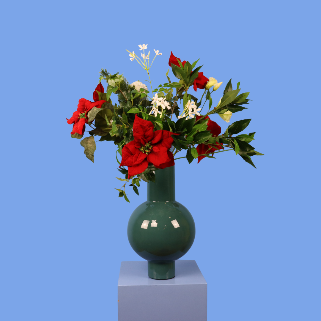 Pip Studio vaas met mooie blijvende bloemen. Vrolijke groene vaas.