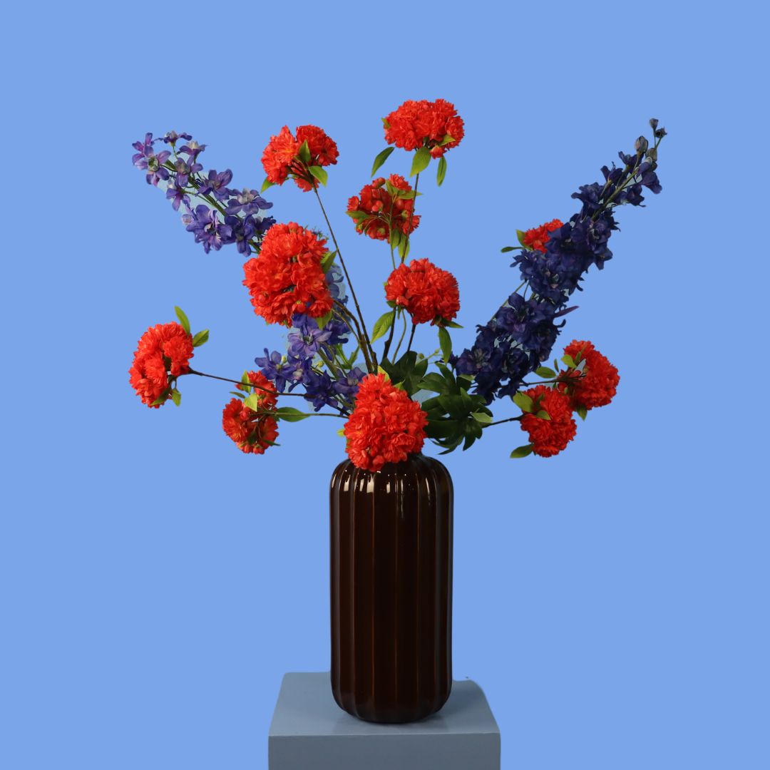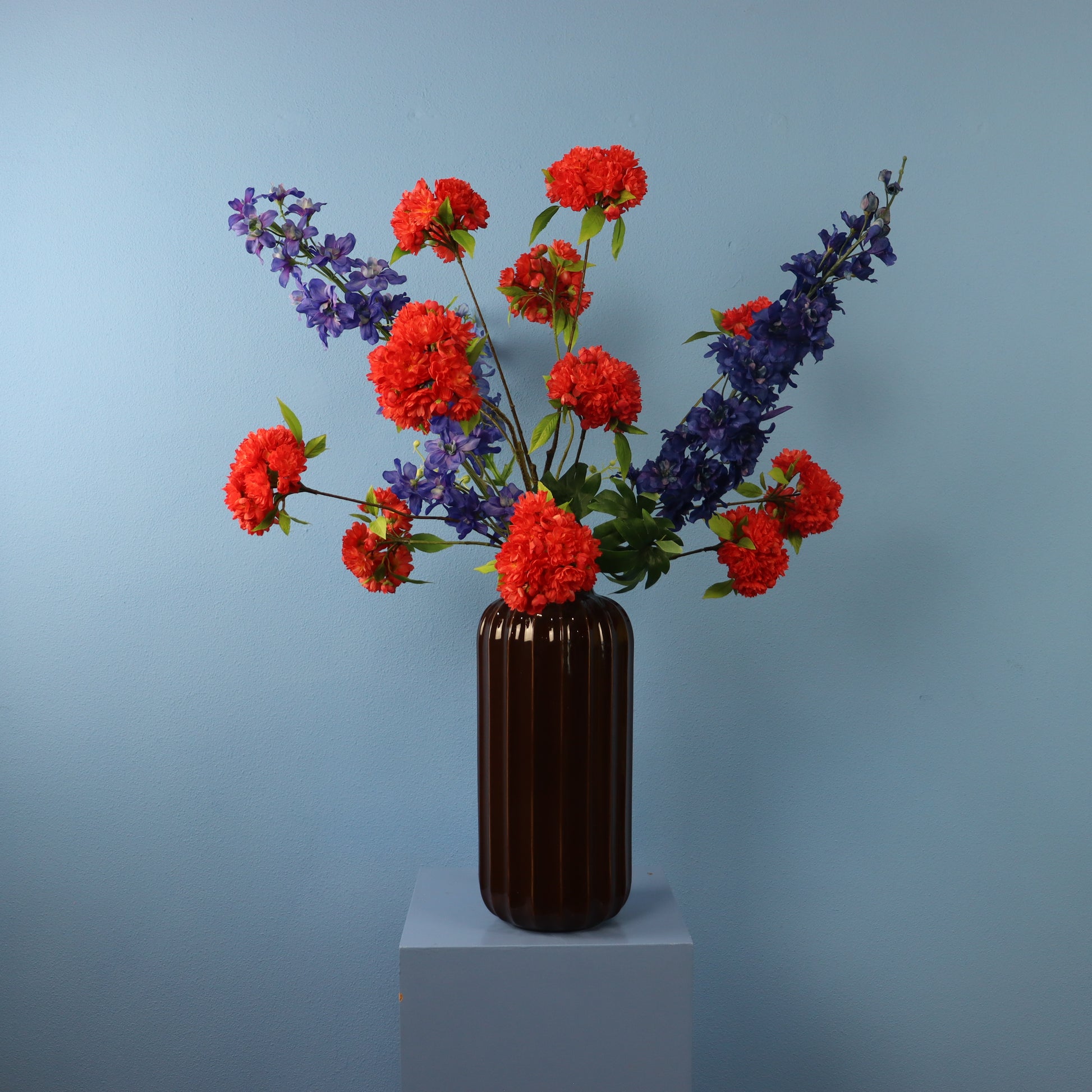 Prachtige bruine vaas van Sissy Boy, met een mooi blijvend boeket.